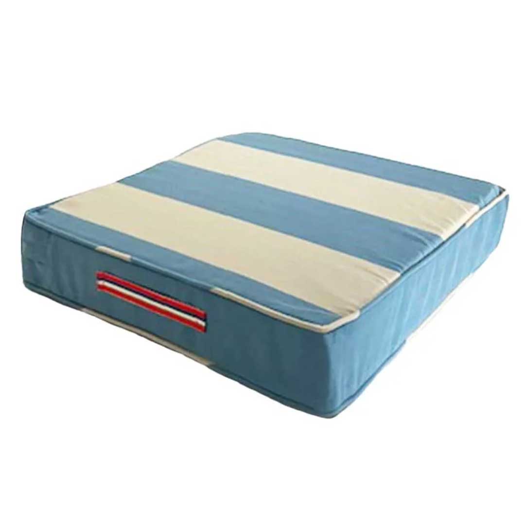 So many armchairs (or garden chairs) become too low for comfort. This 50cm x 50cm booster is designed to raise the seat by 10cm and give the chair new life. It is large and firm and can be put either above or below your existing armchair cushion. It makes an enormous difference! Made from the best quality Putnam’s orthopaedic foam, our bespoke cushions are upholstered in a practical heavy duty cotton. The piped covers, with a contrasting striped, grosgrain handle, are removable and easy to wash.